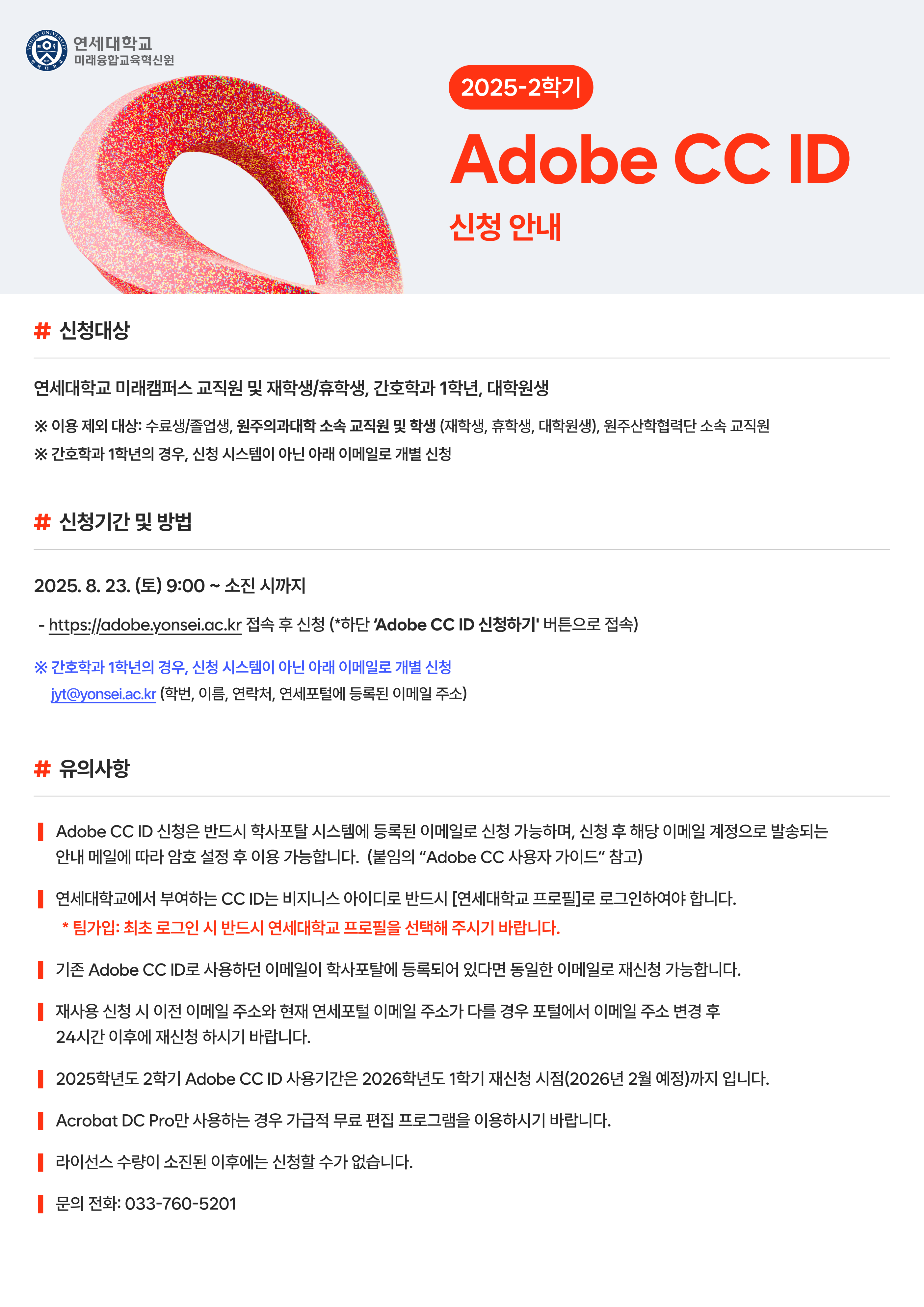 [미래융합교육혁신원] 2025-2학기 Adobe CC ID 신청 안내