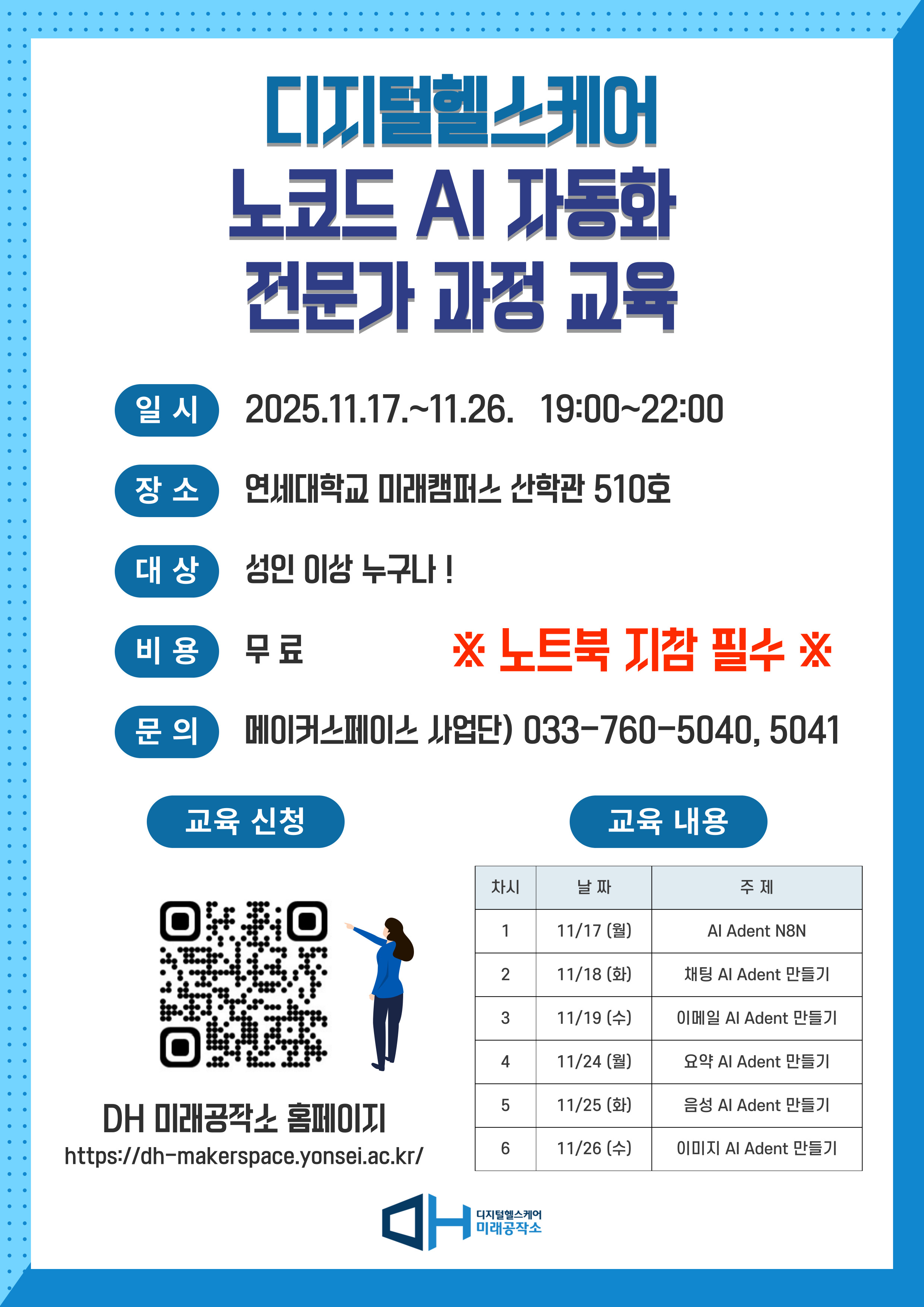 디지털헬스케어 노코드 AI 자동화 전문가 과정 교육을 실시합니다!